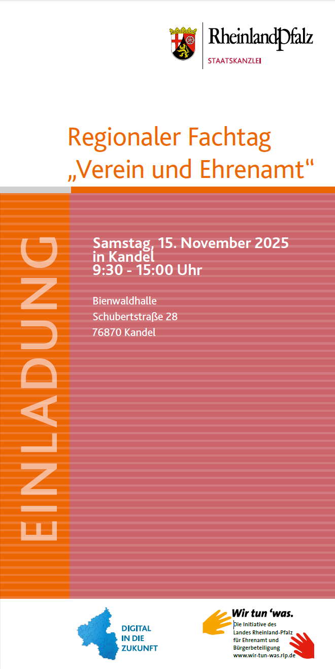 Regionaler Fachtag „Verein und Ehrenamt“ am 15. November 2025 in Kandel